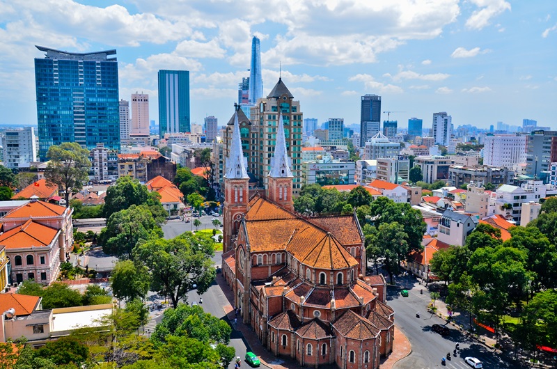 Pequeno-almoço. Transfer para o aeroporto para o embarque em voo com destino à cidade de Ho Chi Minh. Chegada e visita da cidade: o Palácio da Reunificação, a Estação Central dos Correios e a Catedral de Notre Dame (atualmente em renovação). Transfer para o hotel e alojamento.